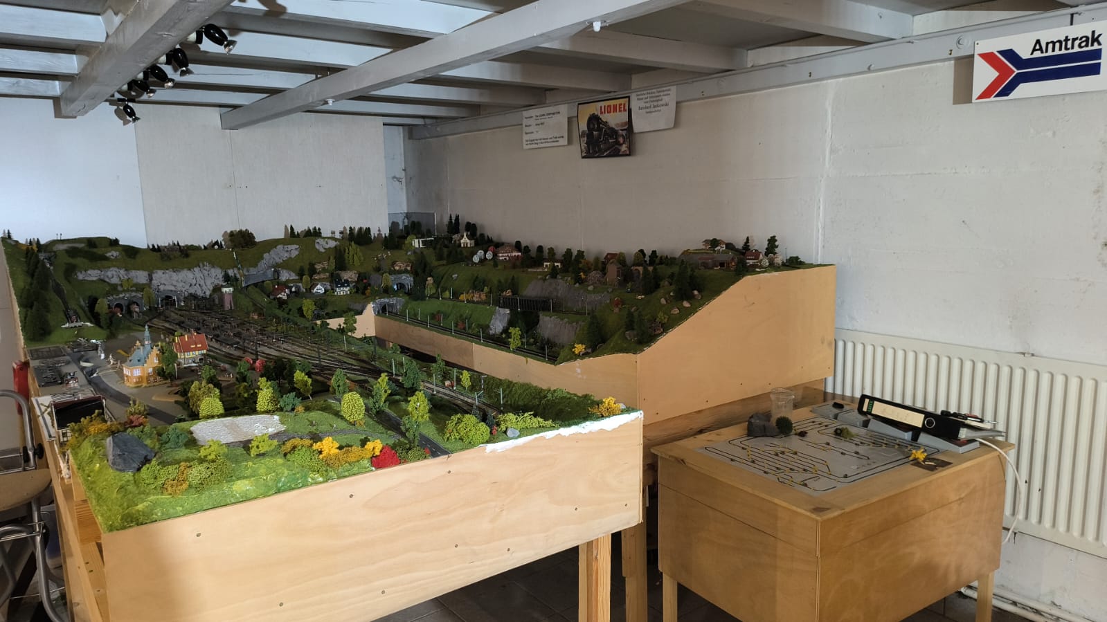 Im Juni diesen Jahres wurde der Umbau vom Treppeneingang der Rottal-Anlage in Angriff genommen. Somit sollte ein wenig mehr Platz für neue Ausstellungsstücke geschaffen werden. Dabei zog auch gleich am 10.06.2025 eine neue N-Anlage, im Stil einer kleinen Berglandschaft mit großem Bahnhof, ein. Diese Anlage gehörte unserem verstorbenen Vereinsmitglied Rudi Rommel. Als Erinnerung an ihn wird der MEC die Anlage mit Liebe weiter vorführen.