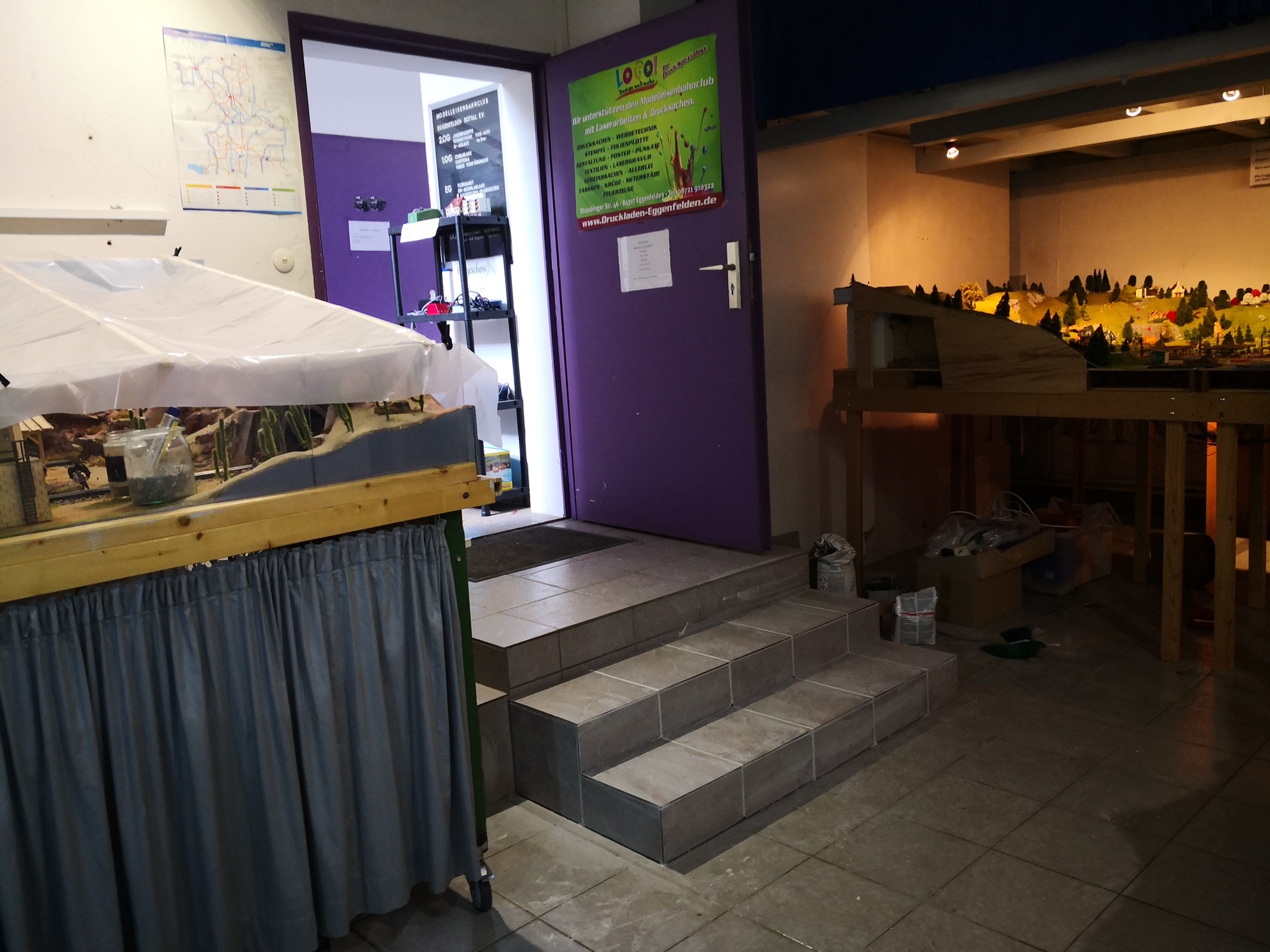 Auch auf der Clubanlage war ein größerer Abriss, wegen Altersschwäche, von Nöten. Der Hauptbahnhof auf der Clubanlage, welcher aus den Gründerzeiten des Clubs stammt, musste nun auch einmal erneuert werden. Und vor einem Neubau kommt bekanntlich erst einmal der Abriss. Das Ergebnis kann dann in den kommenden Jahren bei der Entstehung bewundert werden. Somit gibt es an den zukünftigen Ausstellungstagen immer wieder etwas Neues zu entdecken.